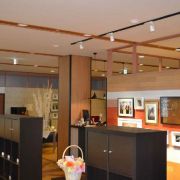 The concept of the salon is based on two ideas: procession and light. Conceptually, we used the romantic image of Venice with its rich and artisanal history. The customer enters the salon and proceeds to a counter that acts like a pulpit. It is here that the initial contact with between the client and the staff happens. The window treatment is meant to emulate traditional Venice glass and the floor pattern evokes the feeling of an old Italian church.