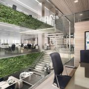 The BBVA Operations Center is an architectural landmark in Mexico City. It is a state-of-the-art, environmentally sustainable award winning building that has raised the profile of BBVA Bancomer in Latin America. Ivan Pazos working as a senior designer helped to reimagine the 21st century work environment. The BBVA operational philosophy has switched to a horizontal management structure that relies on more on collaboration than the traditional top down model. The interior design reinforces this goal by creating social spaces that are shared and meeting places that are open to the informal and collaborative.