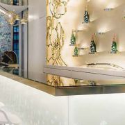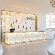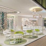 This project is located in the Paradise City Casino and Hotel at Incheon Airport in Korea. French champagne maker Perrier Jouet wanted to create a high end, international lounge that captured the essence of champagne. The effervesce of champagne is in the details and the flow of the space is intoxicating. It is a space that reflects the upscale clientele.